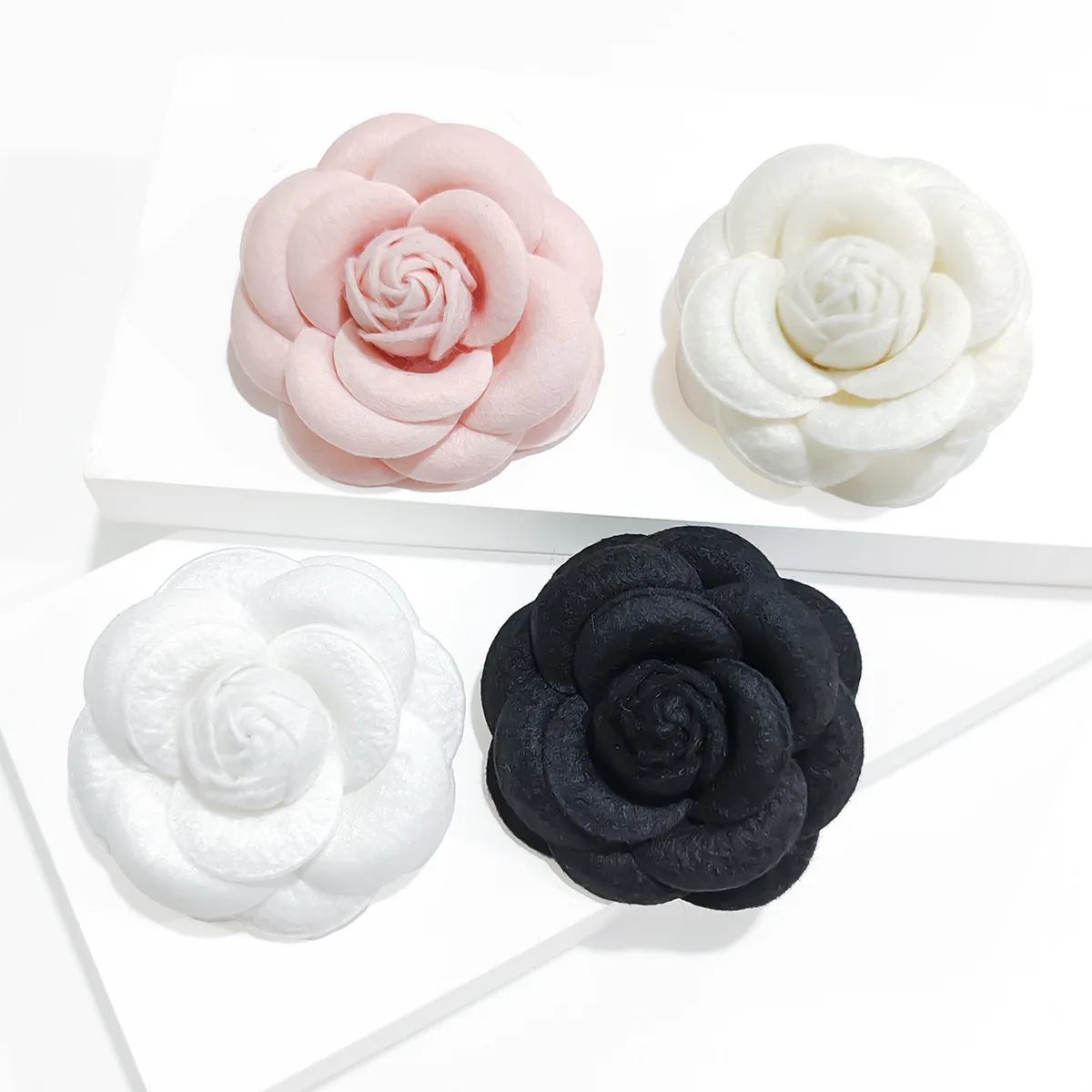 New Retro Camellia Flower Brooch For Women Luxury Design Classic Clothing Laple Pins Accessories Fabric Flower Brooches Jewelry