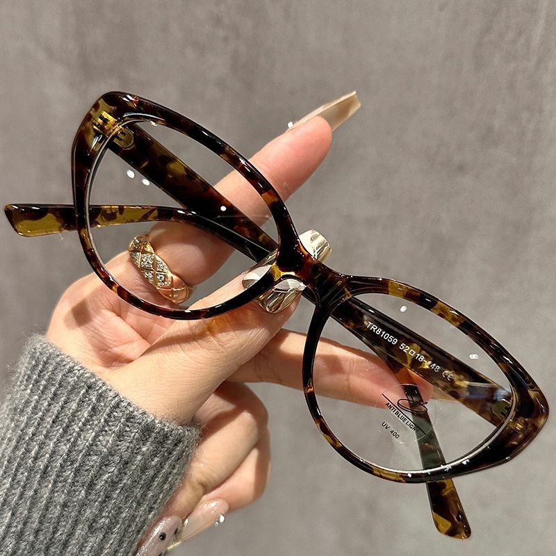 New Retro Cat Eye Black Frame Flat Light Mirror Anti-blue Light Myopia Glasses Small Face Women's Glasses Frame 9027