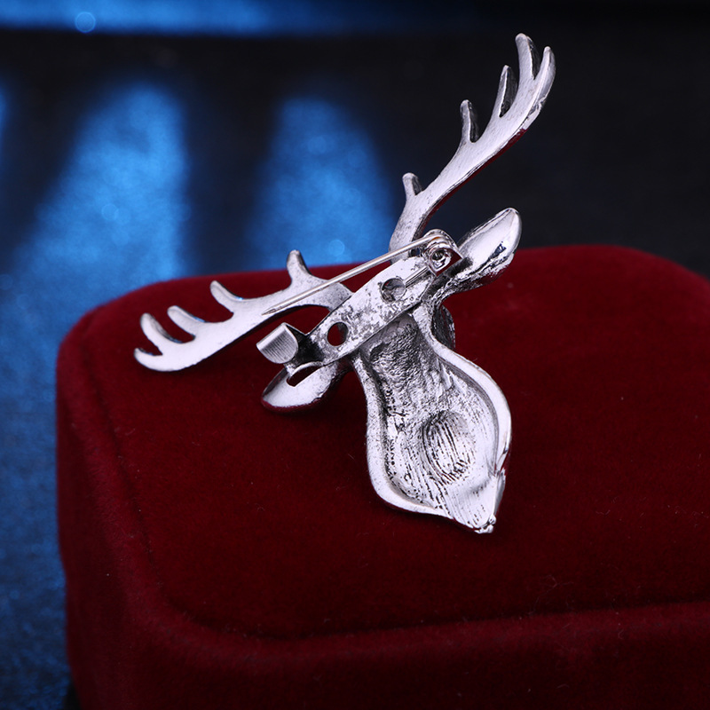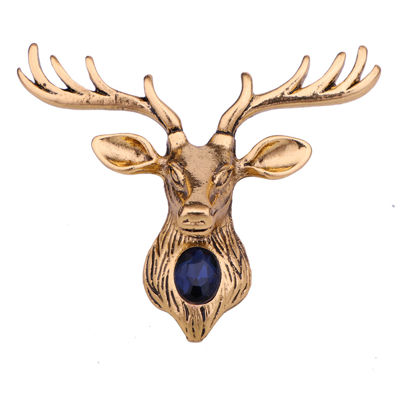 New Retro Metal Elk Brooch Pin Animal Crystal Corsage Suit Coat Lapel Pins Christmas Gifts for Men Jewelry Accessories