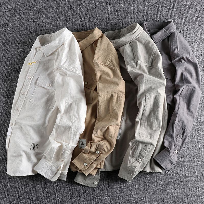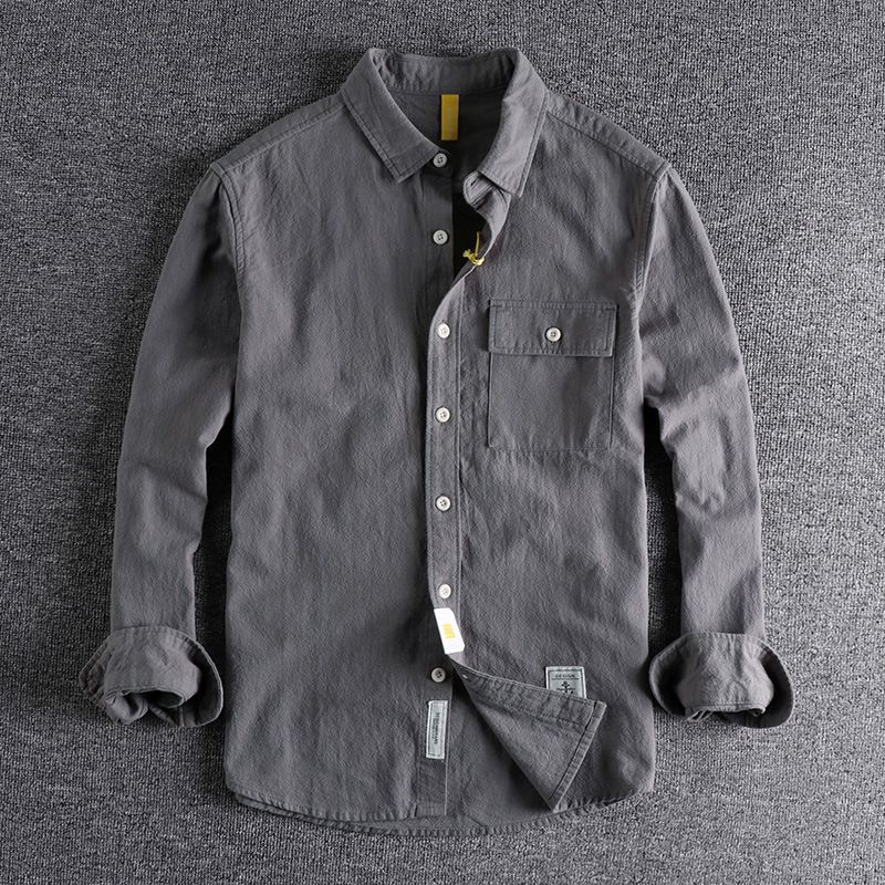 New Retro Washed Texture Long-sleeved Shirt For Men Dark Gray 2XL