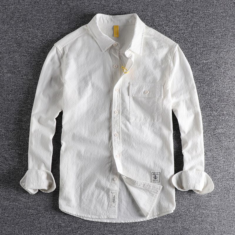New Retro Washed Texture Long-sleeved Shirt For Men White 3XL