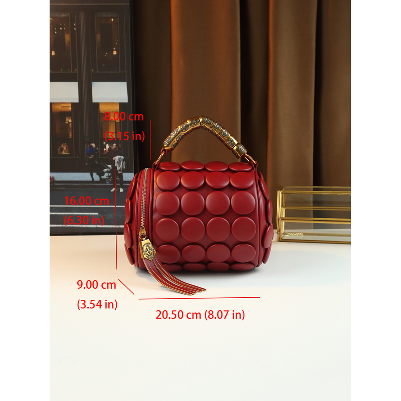 New round Cylinder Women's Casual Versatile Single Shoulder Crossbody Bag Handmade Vintage Button Handbag