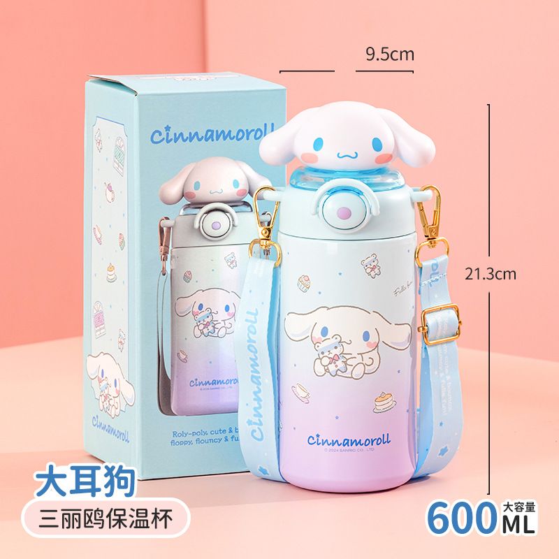 New Sanrio 600ml Thermos Cup - Cute Character Insulated Water Bottle with Adjustable Strap, Leakproof, for Daily & Outdoor Use