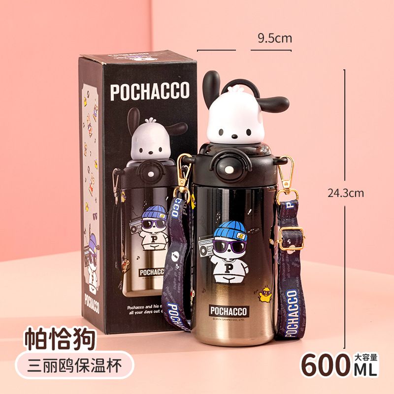 New Sanrio 600ml Thermos Cup - Cute Character Insulated Water Bottle with Adjustable Strap, Leakproof, for Daily & Outdoor Use