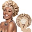 New Satin Double Layer Bonnet Solid Wide Tie Band Stretch Head Silky Bonnet Edge Wrap Nightcap Hair Care Shower Bonnet for Women