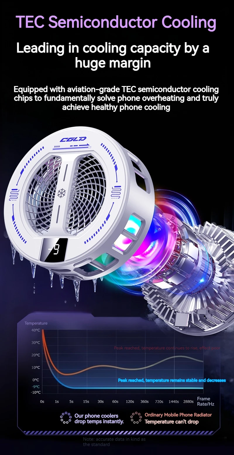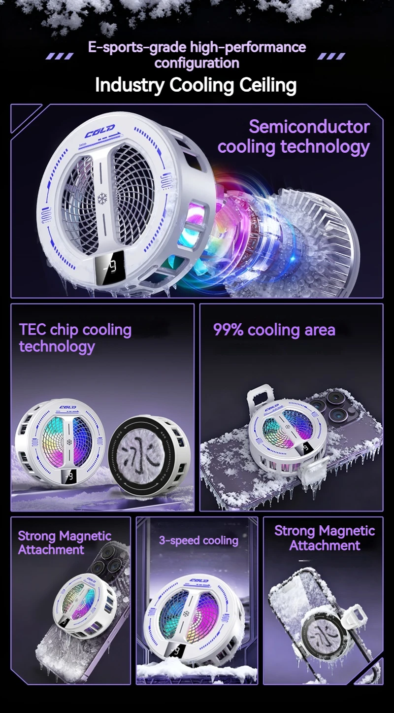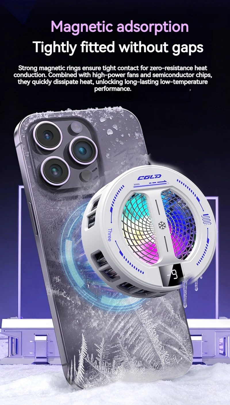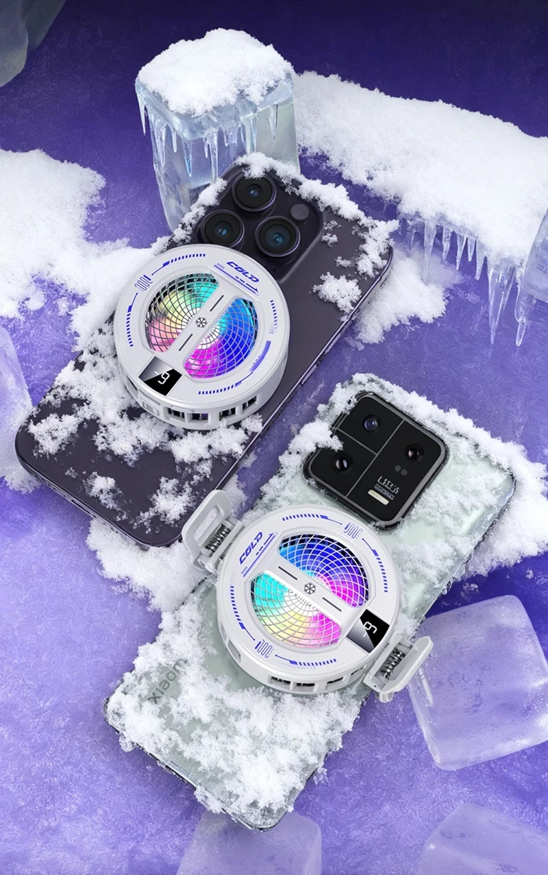 NEW Semiconductor Magnetic Clip Phone Cooler with Digital Display Temperature RGB Lights Compatible for Iphone Samsung Xiaomi