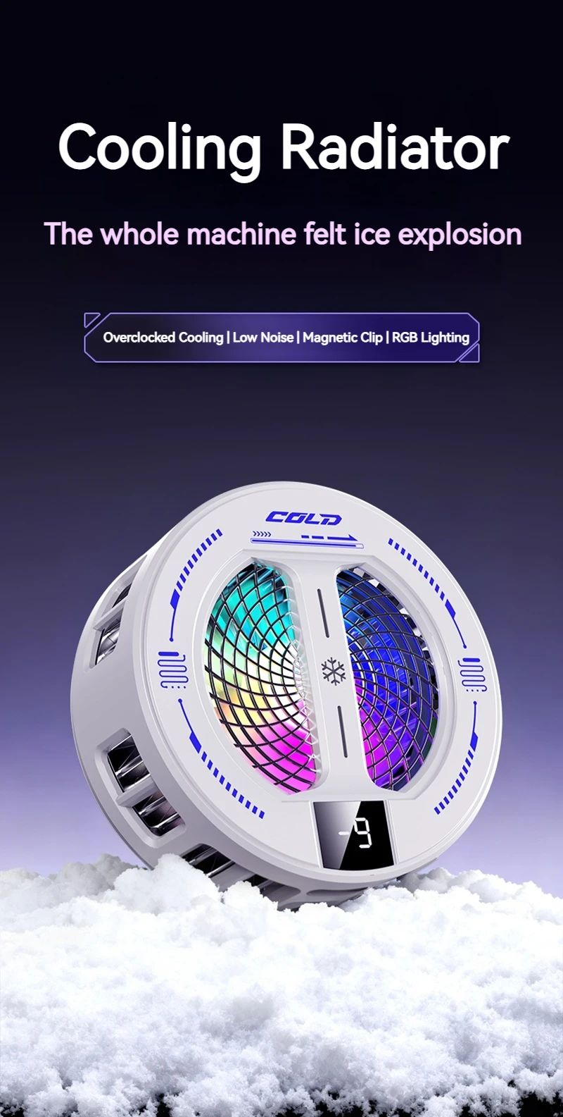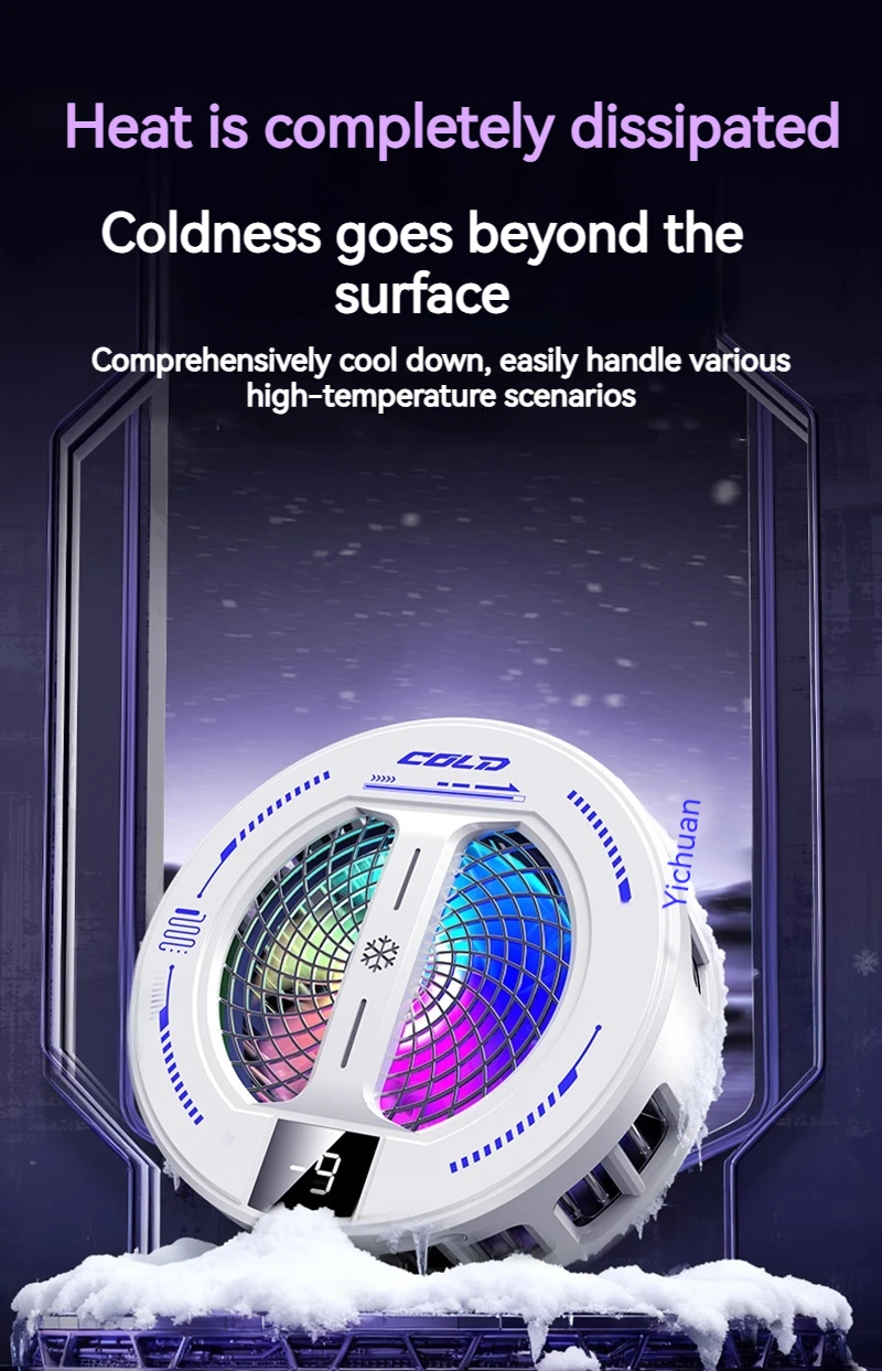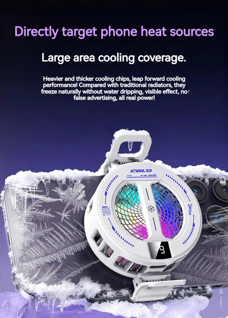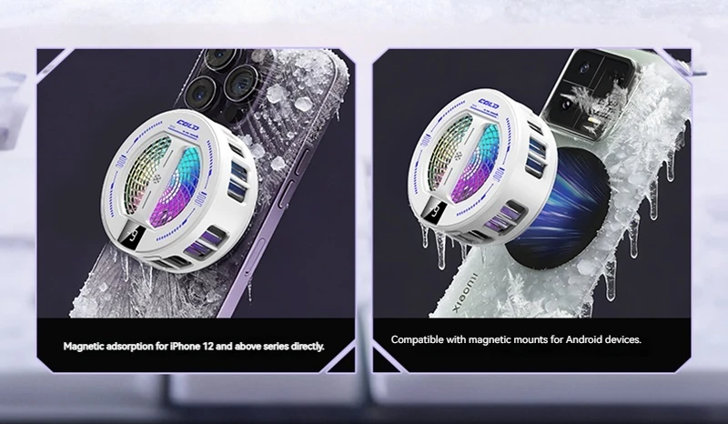 NEW Semiconductor Magnetic Clip Phone Cooler with Digital Display Temperature RGB Lights Compatible for Iphone Samsung Xiaomi