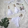 New Sexy Purple Halter Crystal Diamond Bikini 2021 Female Swimsuit Women Swimwear Rhinestone Bikini White S