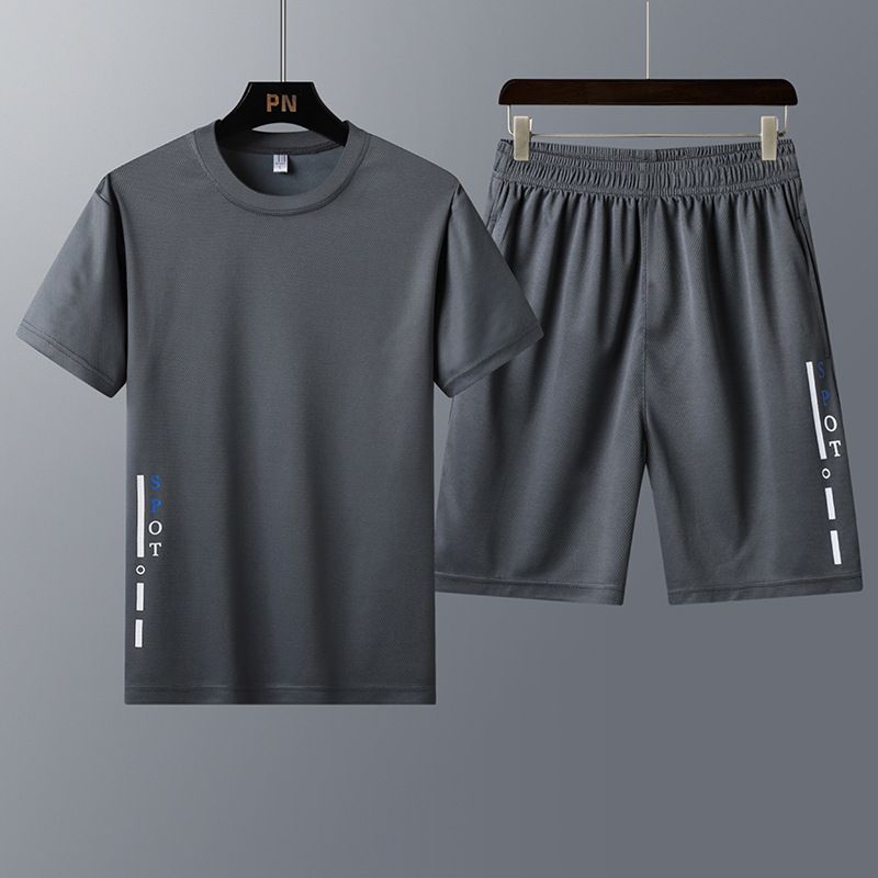 New Short-Sleeved T-Shirt Youth Trend Two-Piece Sportswear Grey 2XL
