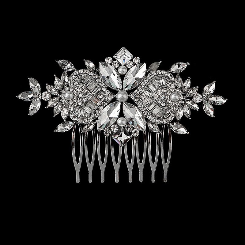 New Silver Alloy Hair Comb Handmade Pearls Rhinestones Fashion Metal Headpiece Elegant Hair Jewellery Accessory For Women
