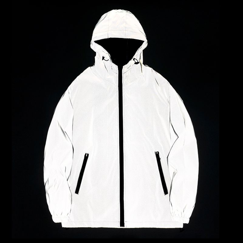 NEW SIZE Night Reflective Jackets Double Fabric Windbreaker Hooded Jacket Men Hip Hop Dancer Waterproof Zipper Coats Outwear