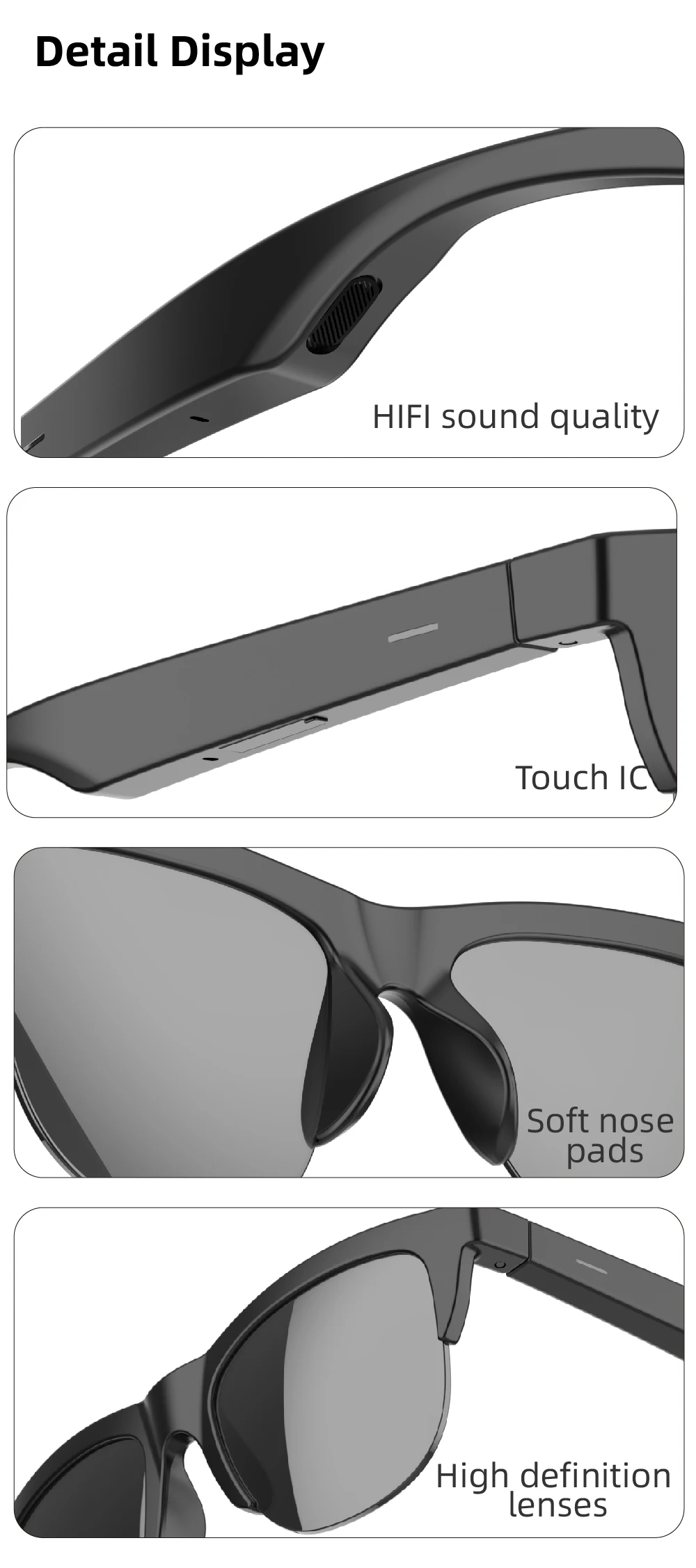 New Smart Bluetooth V5.3 Sunglasses Glasses Call Outdoor Sports Headphones HIFI Black Technology Anti-touch For Men And Women