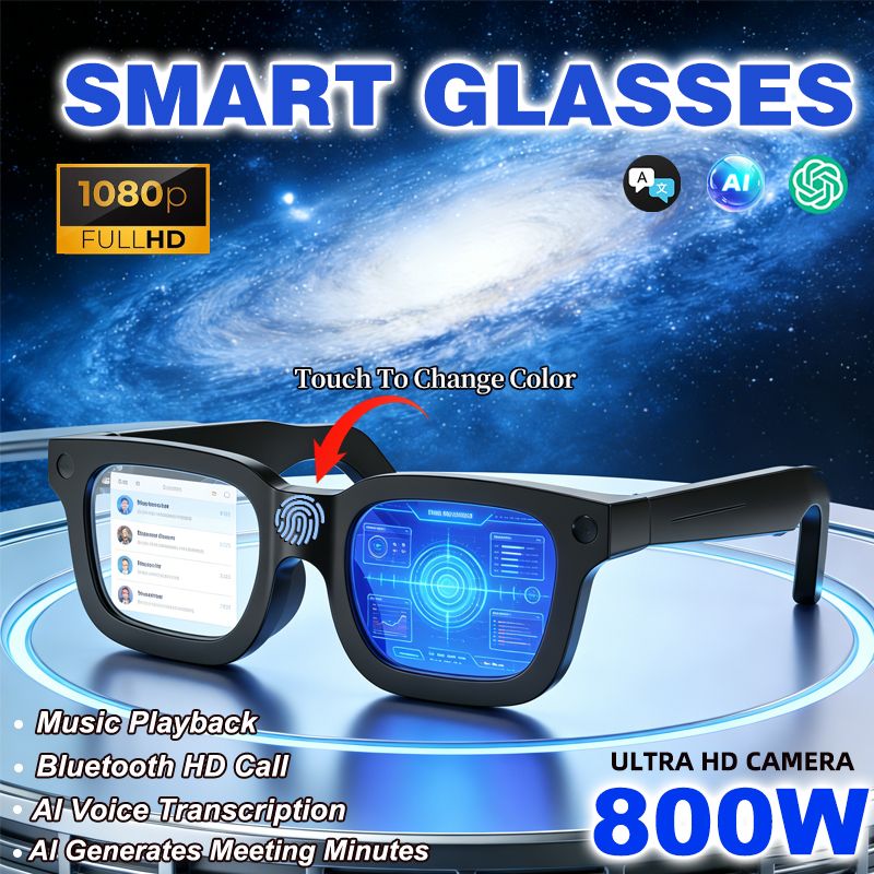 New Smart Glasses 800W HD Camera Electrochromic Lenses 32GB Listen To Music Unlimited Voice Calls WIFI Transmission SmartGlasses