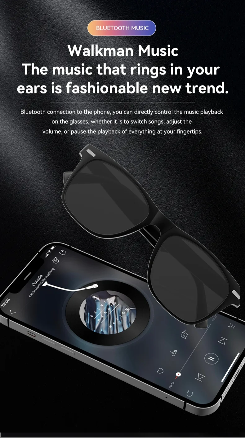 New Smart Glasses Camera Remote Shoot Bluetooth Call Music Stereo Mic Men Touch Sunglasses AI Voice Assistant Android IOS Phone