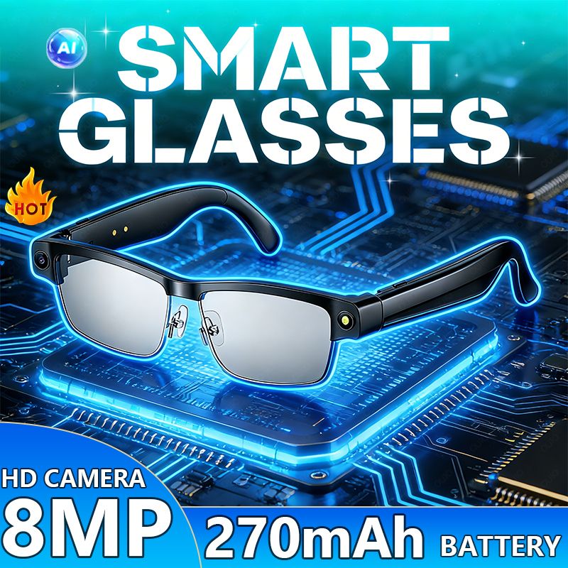 New Smart Glasses Dual Microphone Noise Reduction 8MP HD CameraAI Voice Assistant AI Language Translation BLE5.4 Smart Glasses