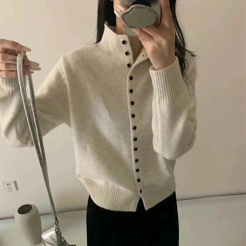 New Soft Comfortable Stand-Up Collar Sweater Cardigan Women Simple Single Breasted Cardigans Coat Autumn Solid Knitted Outerwear