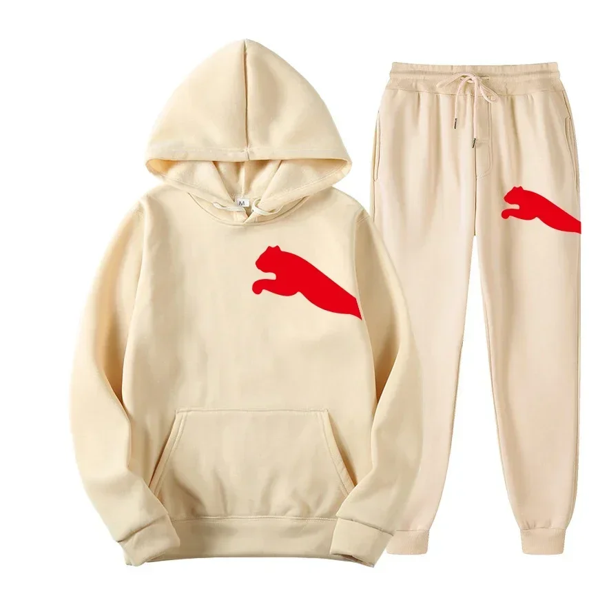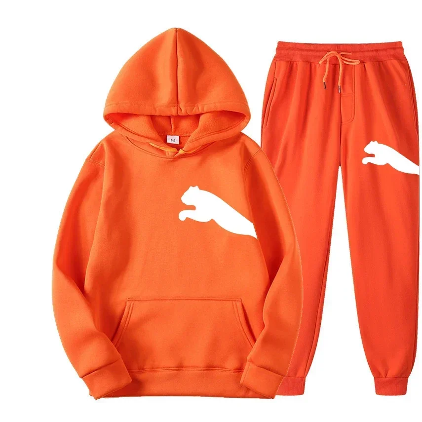New spring and autumn jogging men's and women's casual set, outdoor fashionable men's hooded sweatshirt and pants 2-piece set