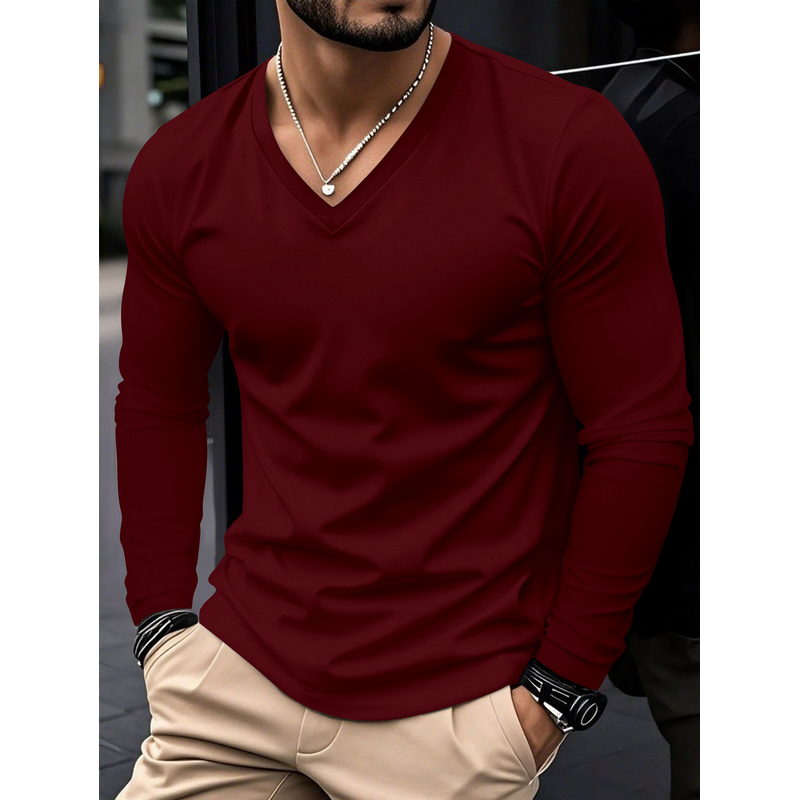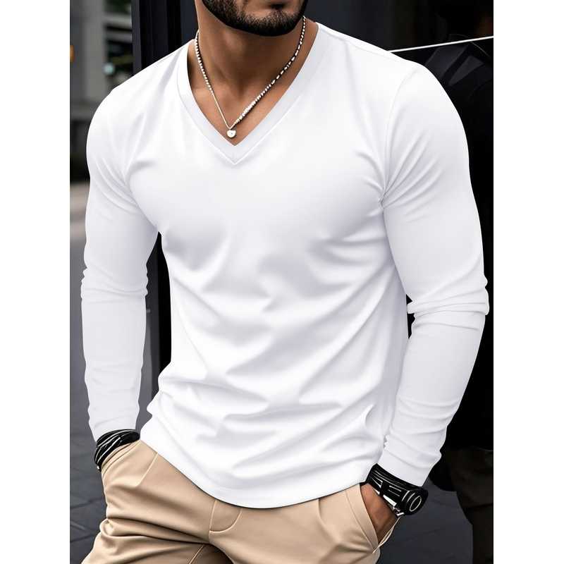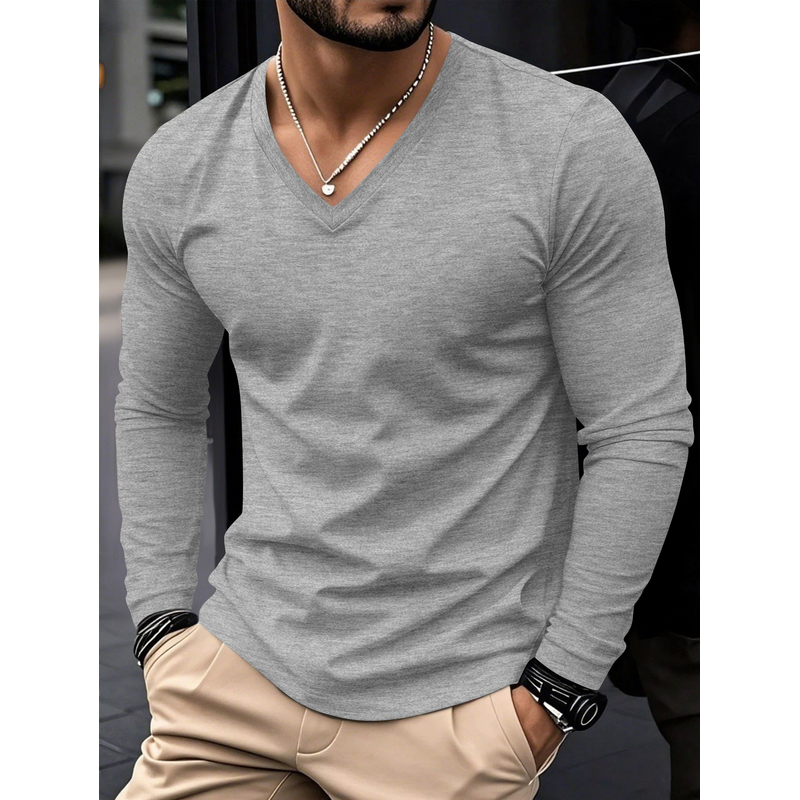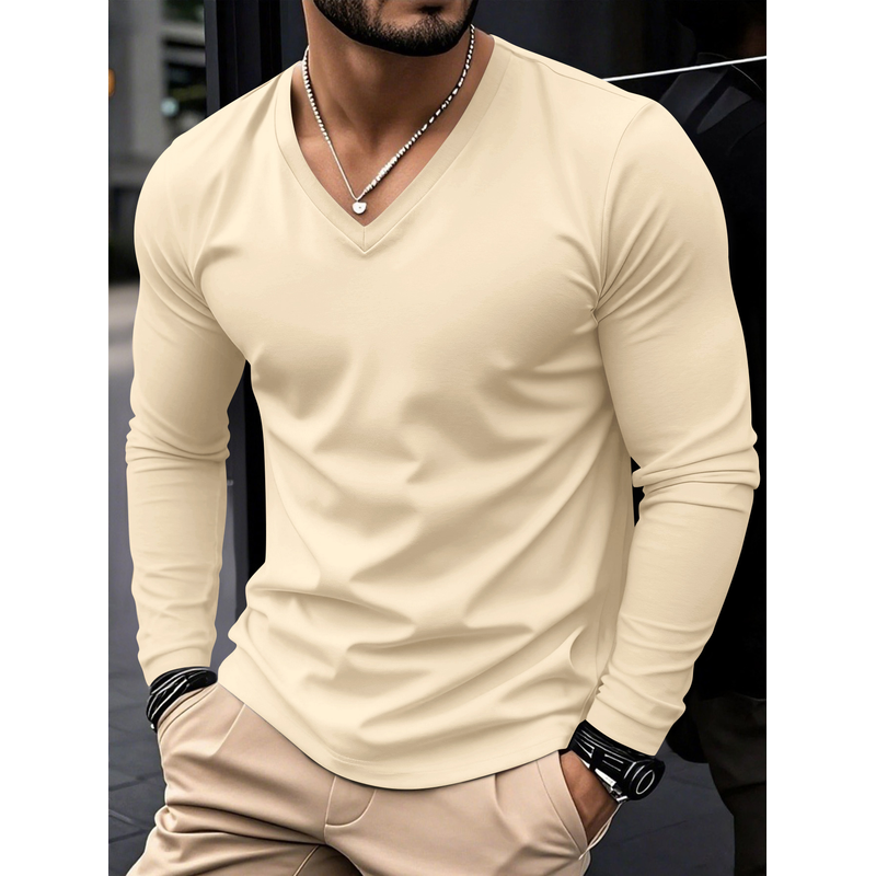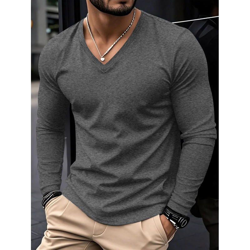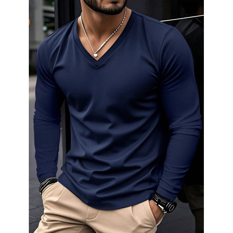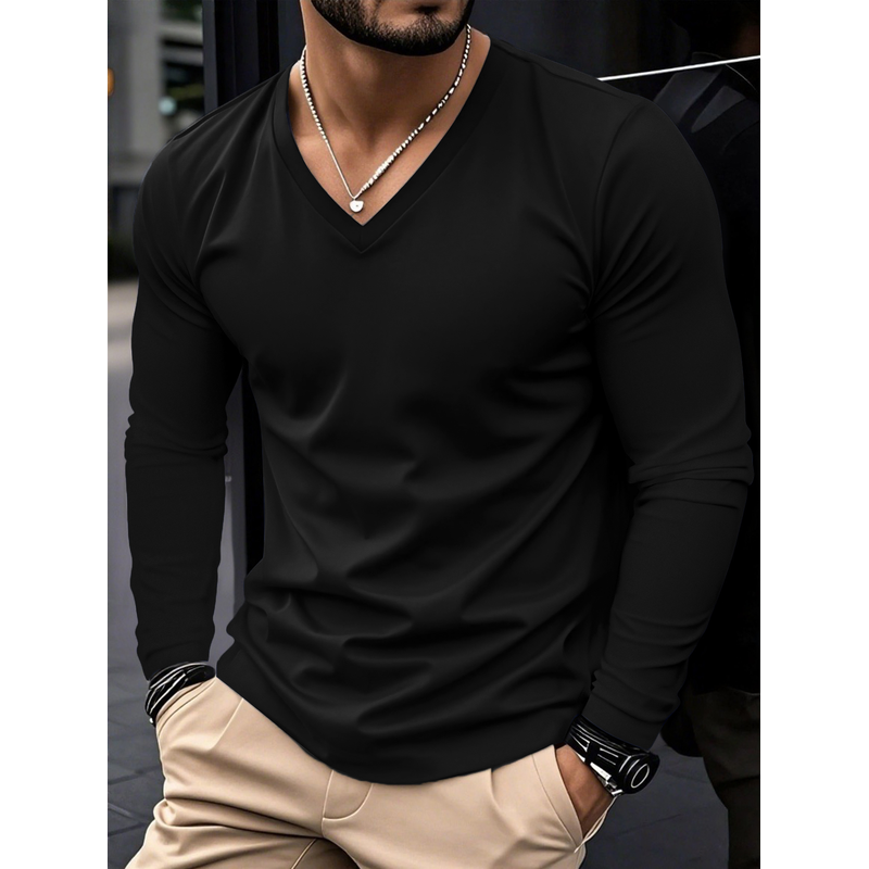 New Spring Autumn Style Everyday Wear Outdoor Sports Fashion Trendy Versatile Color Block V-neck Long Sleeve Men's Top