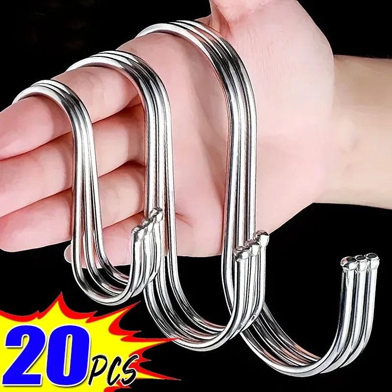 New Stainless Steel S-Shape Hooks Multi-function Hanging Hook for Clothes Bags Towels Home Kitchen Bathroom Storage Rack Holders