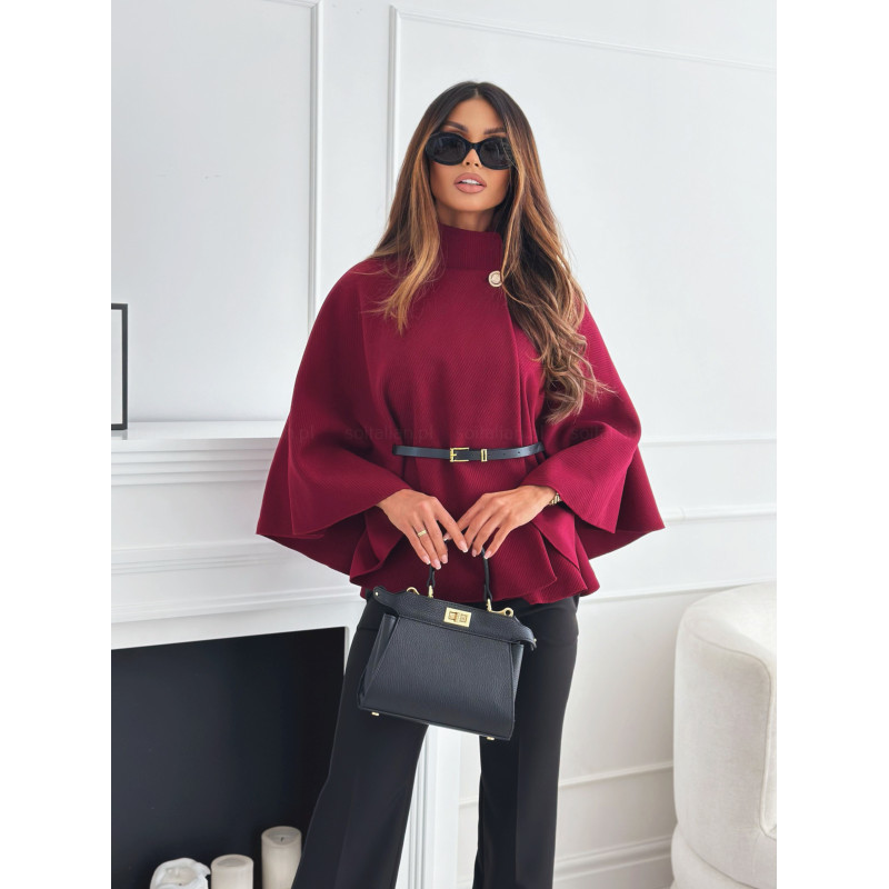 New Stand Collar Batwing Sleeves Cloak Top With Belt Ins Fashion Temperament Jacket Woolen Sweater Outwear For Women Clothing Black S