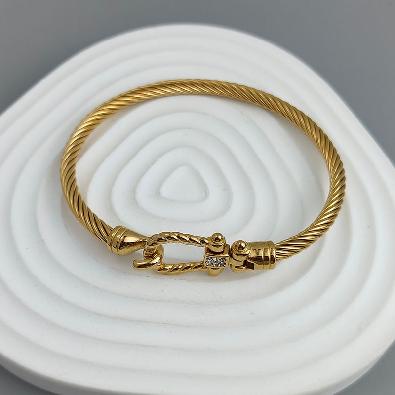 New steel wire button pattern horseshoe gold-plated stainless steel bracelet 18K, high quality waterproof couple bracelet, wife