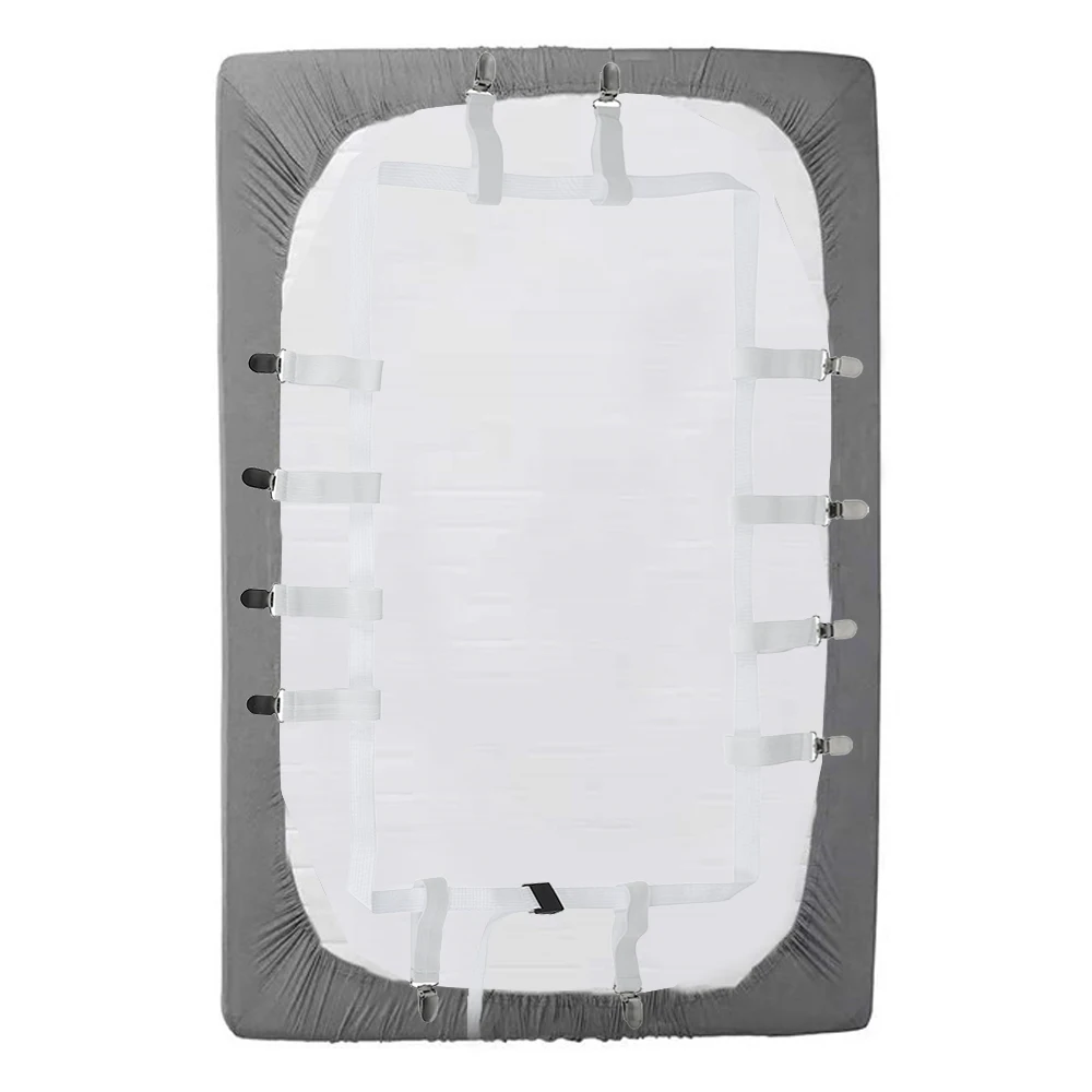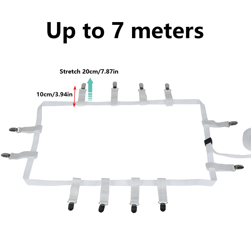 2.Put your sheets in place and fix 12 long straps with metal clips.