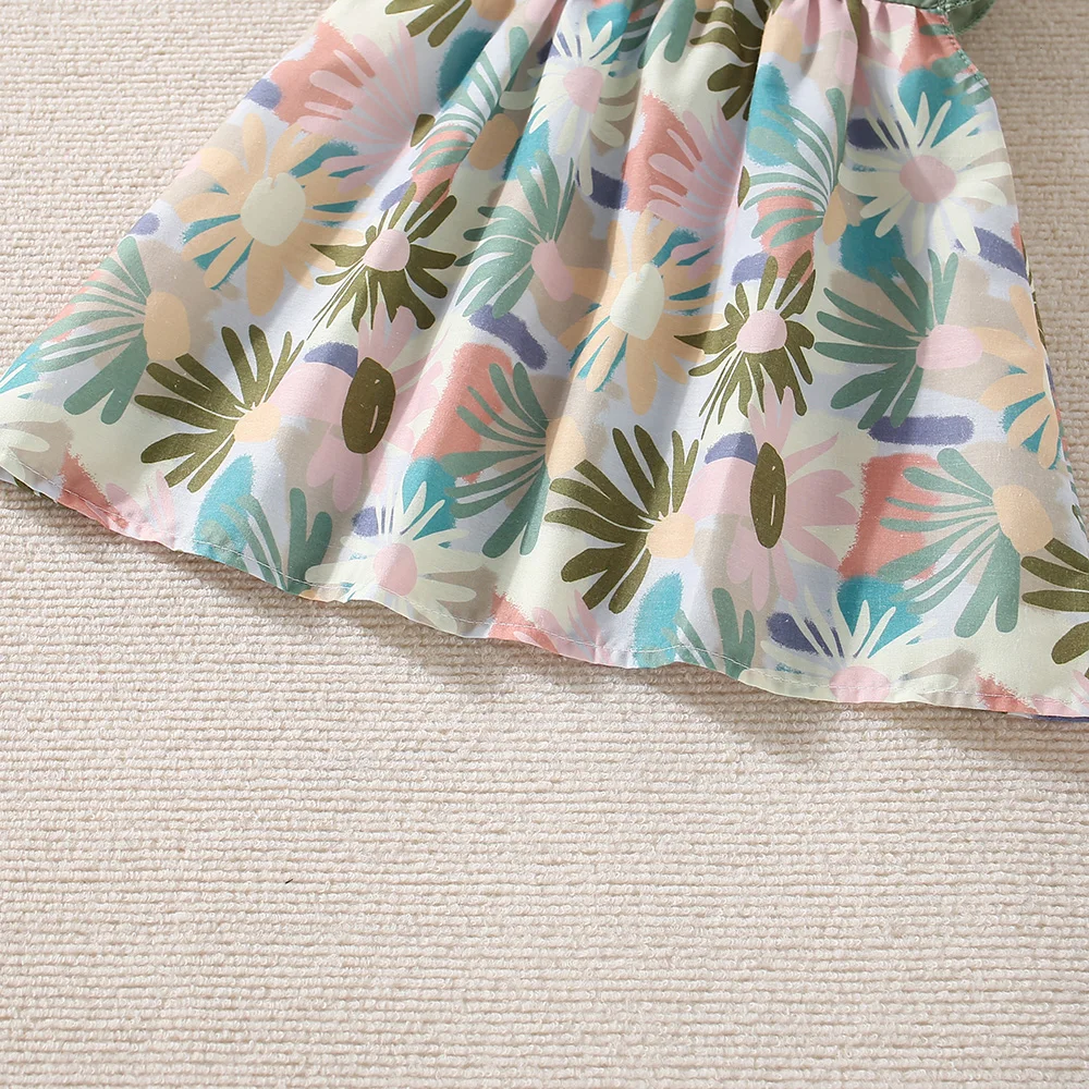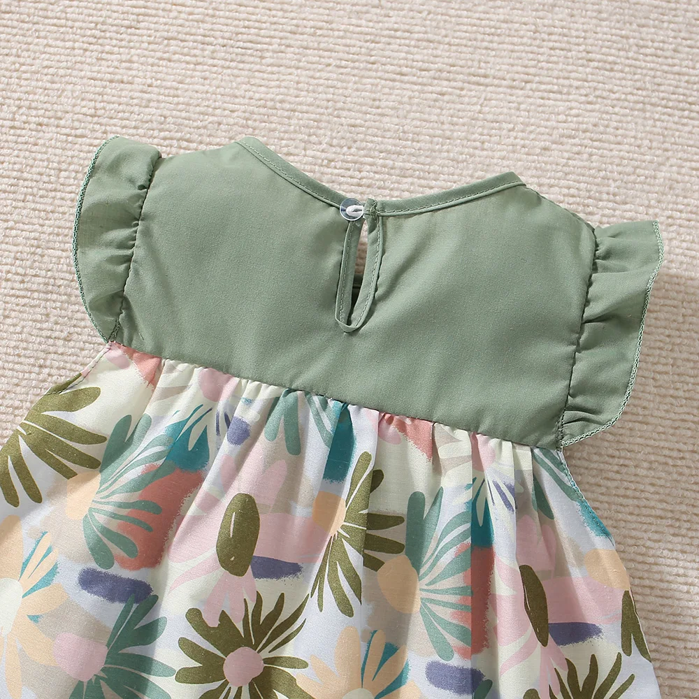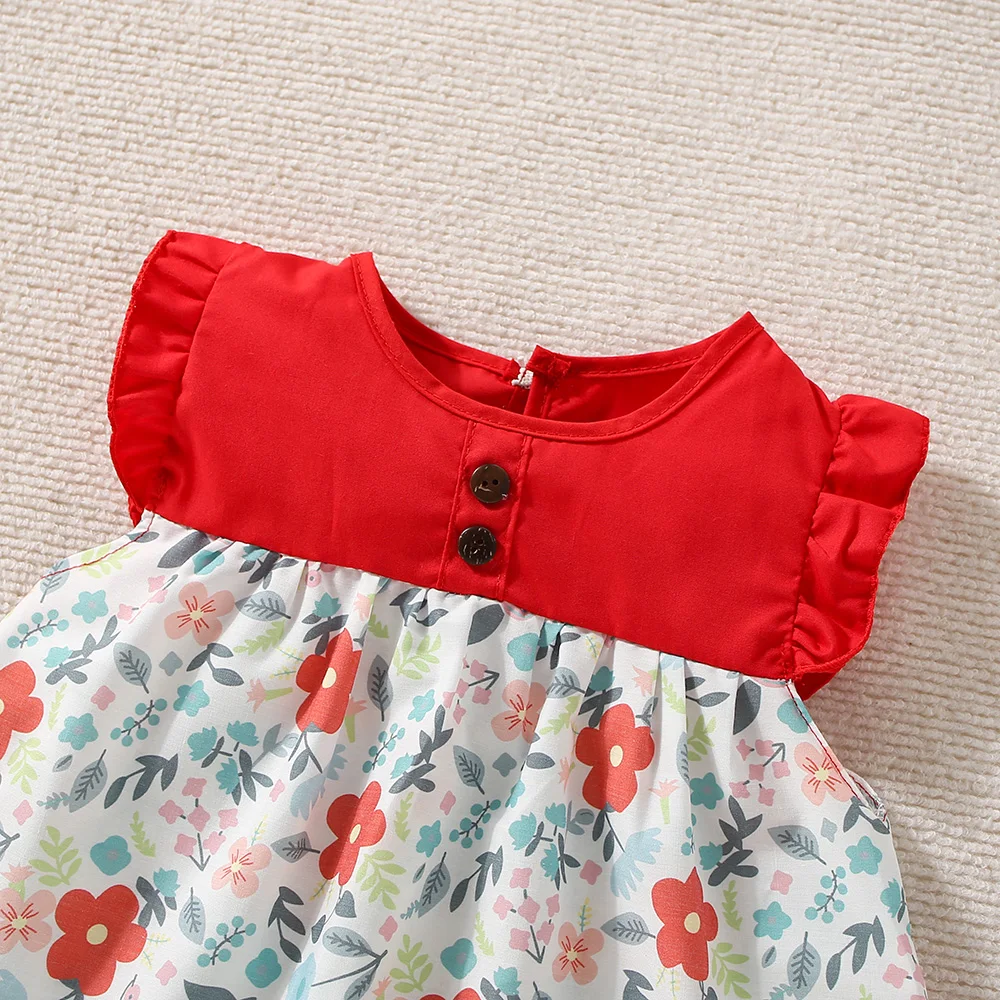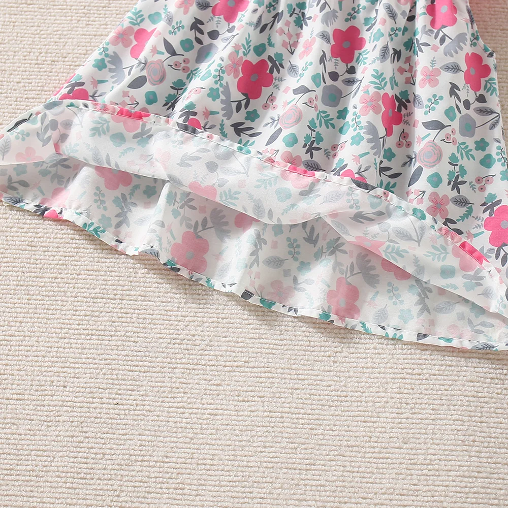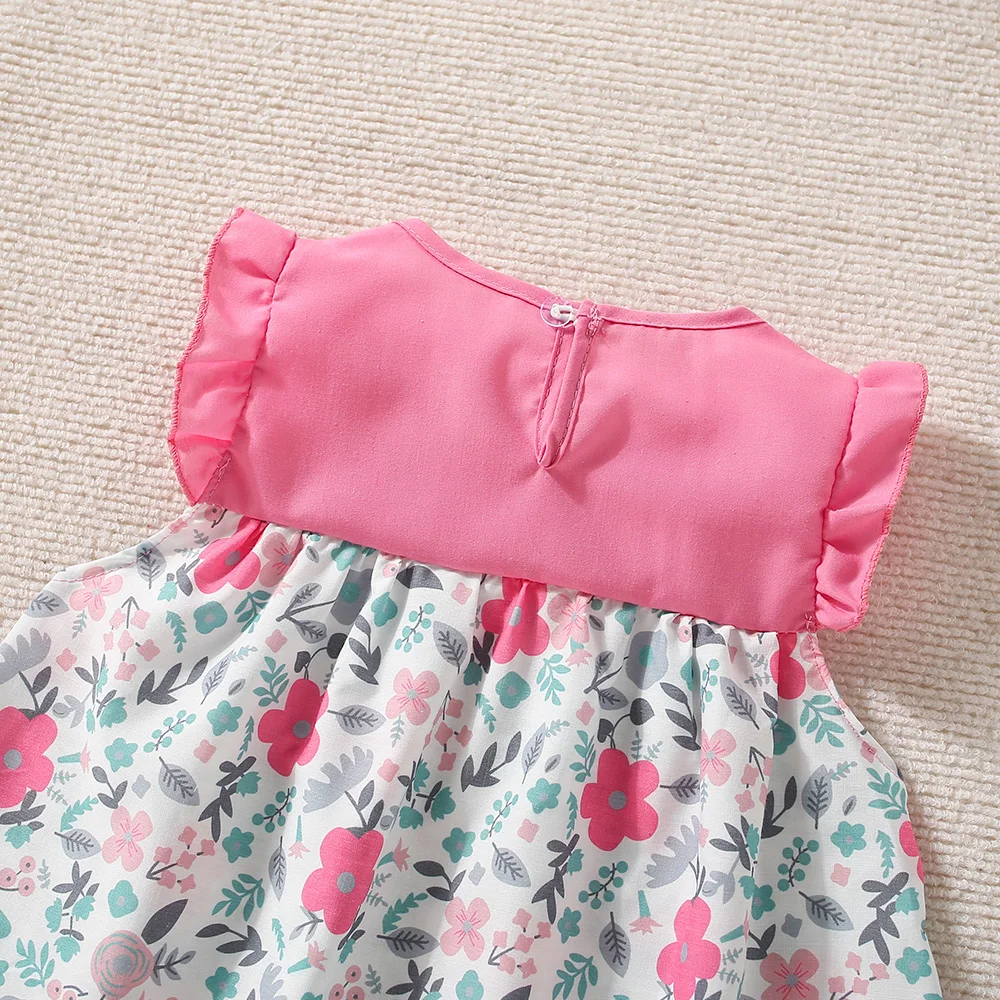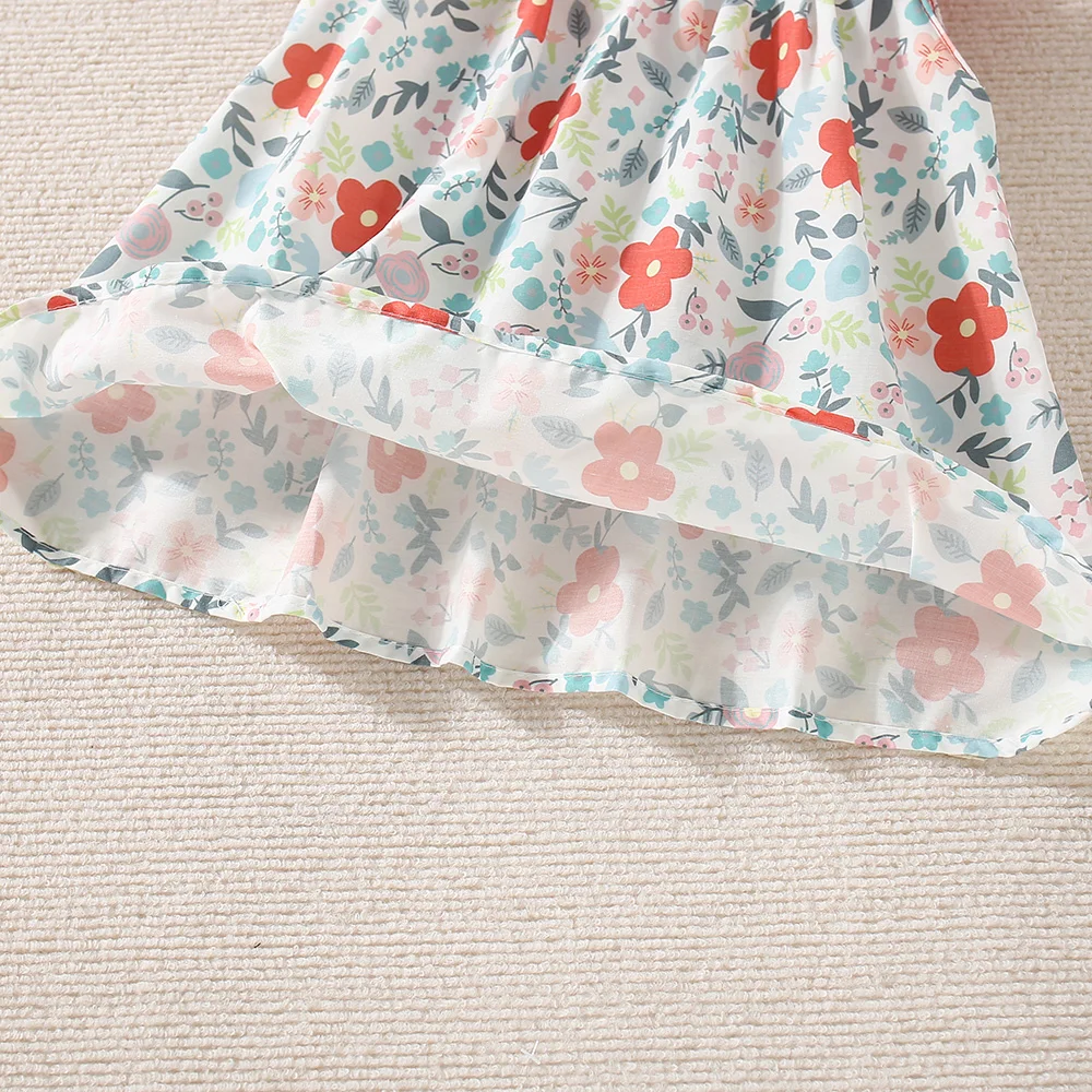 New Summer Baby Girl Floral Dress Girl Sleeveless Pure Cotton Newborn Birthday Dress Comes with Sun Hat