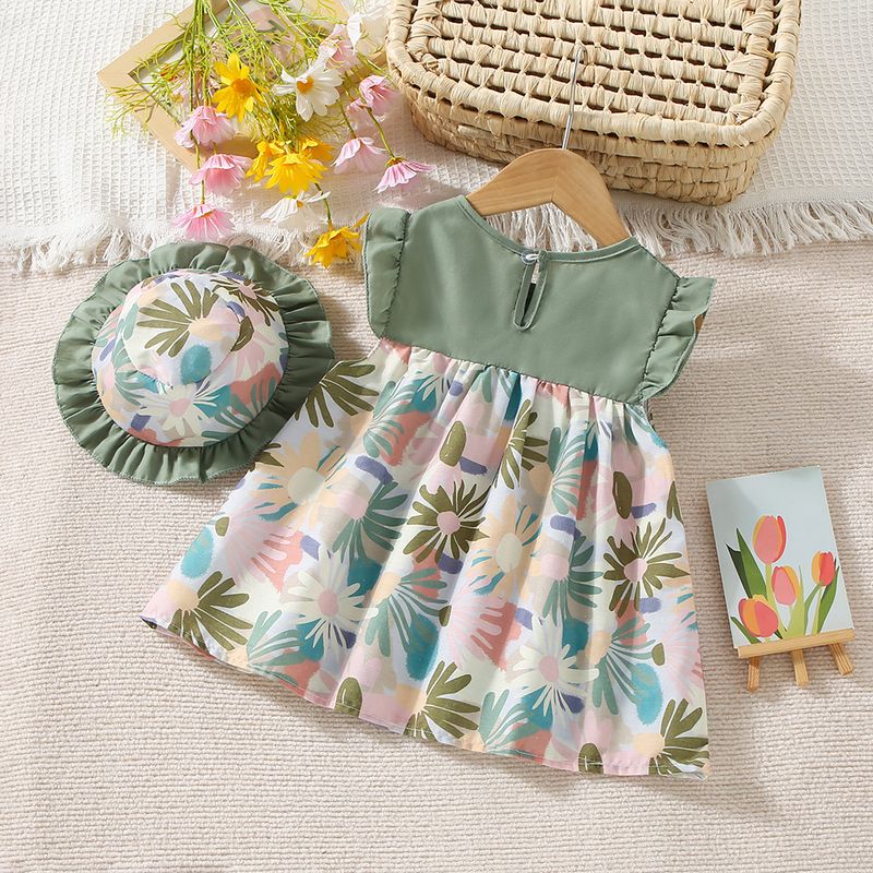 New Summer Baby Girl Floral Dress Girl Sleeveless Pure Cotton Newborn Birthday Dress Comes with Sun Hat