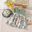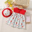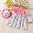 New Summer Baby Girl Floral Dress Girl Sleeveless Pure Cotton Newborn Birthday Dress Comes with Sun Hat
