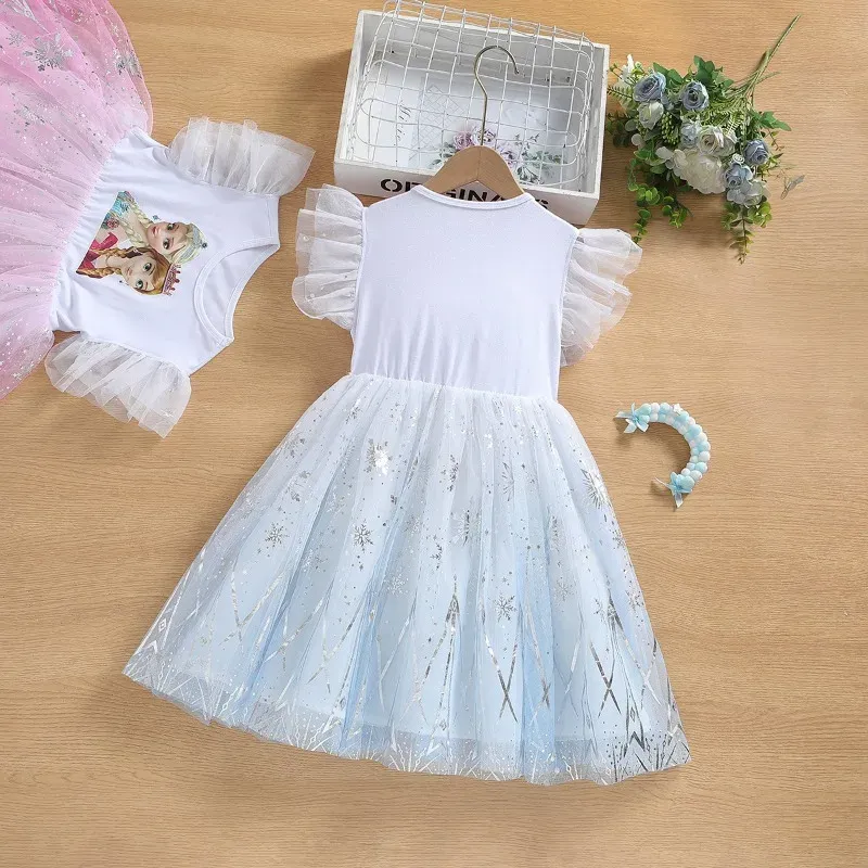 This girls' dress features the iconic Disney Princess Elsa, bringing a touch of magic to your little one's wardrobe.