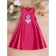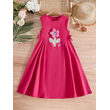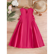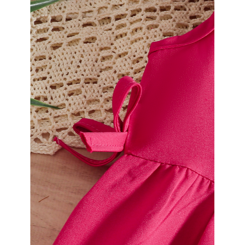 玫红色连衣裙,腰间带蝴蝶结,前幅带大花朵,日常休闲,甜美可爱