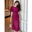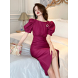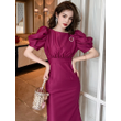 New Summer Satin Elegant Office Women Evening Dress Formal Purple O-Neck Slim Midi Party Prom Street Clothes Femme Mujer Vestido