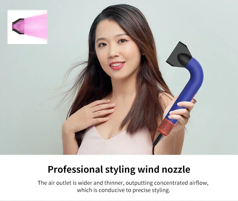 • Customizable Styling Options: Equipped with multiple high-quality air nozzles, this professional-grade hair dryer effortlessly caters to a variety of hair styling needs—whether you want sleek straightening, voluminous blowouts, or precise precision styling, it delivers salon-quality results at home.