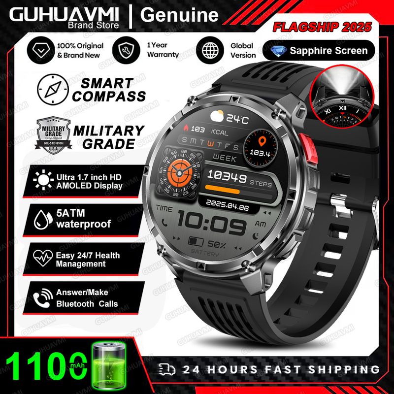 New T-REX3 Ultra 1100mAh Battery SmartWatch 10ATM Waterproof GPS Compass Flashlight 1.7" AMOLED HD Call Sports Smart Watch Men