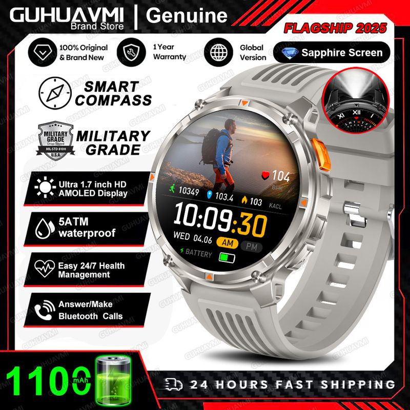 New T-REX3 Ultra 1100mAh Battery SmartWatch 10ATM Waterproof GPS Compass Flashlight 1.7" AMOLED HD Call Sports Smart Watch Men