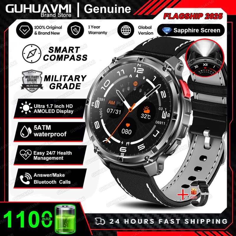 New T-REX3 Ultra 1100mAh Battery SmartWatch 10ATM Waterproof GPS Compass Flashlight 1.7" AMOLED HD Call Sports Smart Watch Men