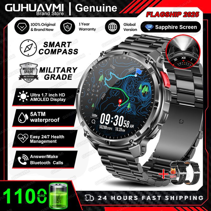 New T-REX3 Ultra 1100mAh Battery SmartWatch 10ATM Waterproof GPS Compass Flashlight 1.7" AMOLED HD Call Sports Smart Watch Men