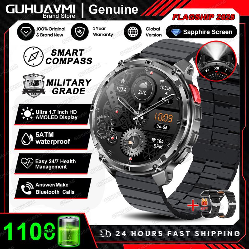 New T-REX3 Ultra 1100mAh Battery SmartWatch 10ATM Waterproof GPS Compass Flashlight 1.7" AMOLED HD Call Sports Smart Watch Men