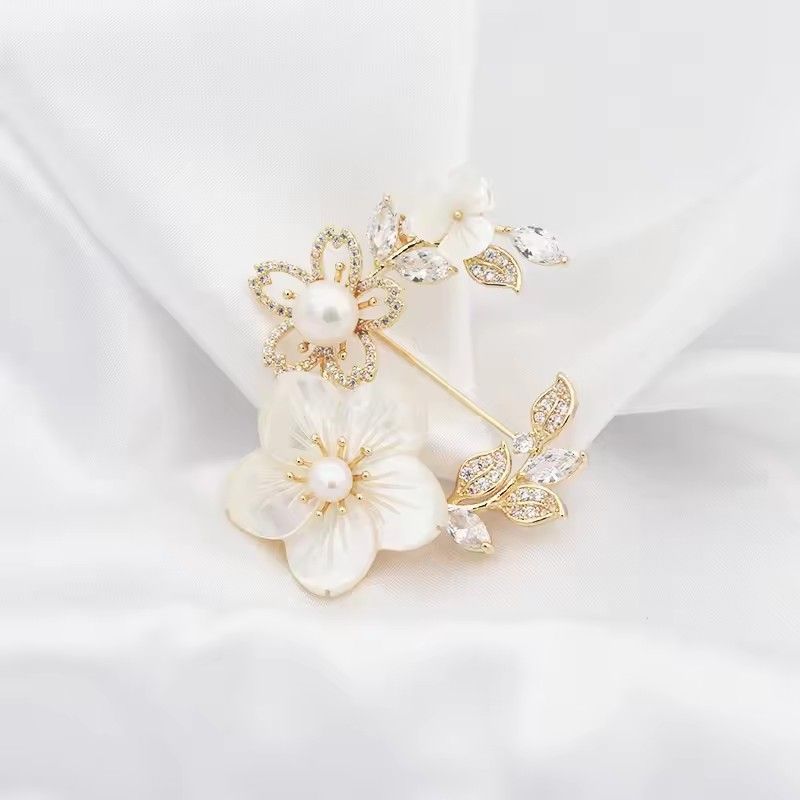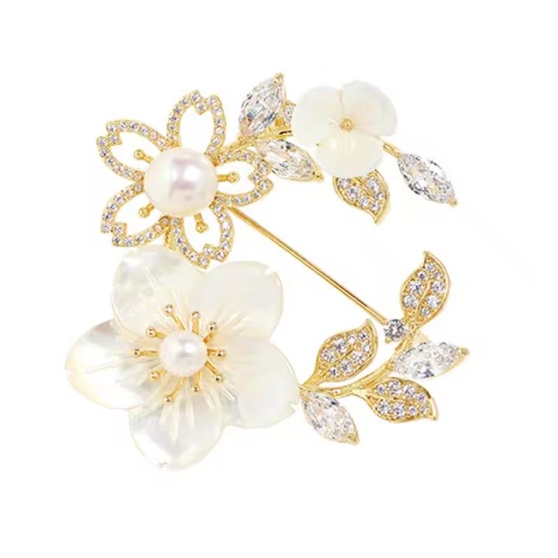 New Temperament Cherry Blossom Rhinestone Brooch Women's Pearl Flower Corsage Fashion Pin Buckle Accessories