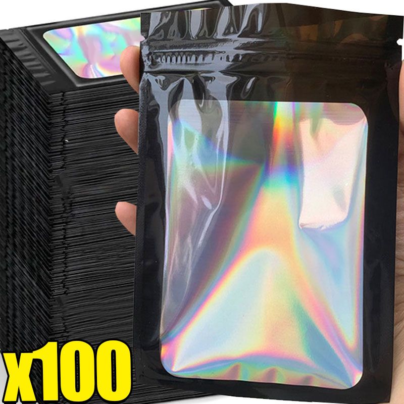 New Thick Smell Proof Mylar Bags Holographic Laser Color Plastic Packaging Pouch Jewelry Retail Storage Pouch Gift Zip Lock Bag