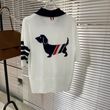 New Thin Stripe Dog Pattern POLO Polo T-Shirt Dachshund Short Sleeve White L