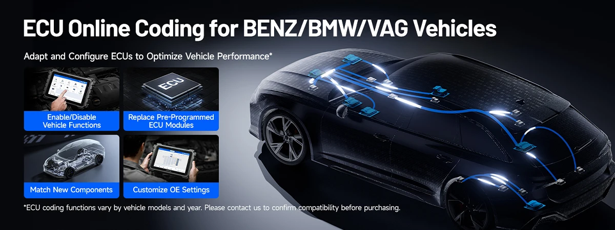 Custom Solutions with ECU Coding:which is compatible with Benz, BMW, VW,Take advantage of offline code to achieve personalization of vehicle functions, enable/disable features, or match new accessories by modifying configuration parameters in the ECU via diagnostic equipment. Transform your shop’s capabilities and boost efficiency