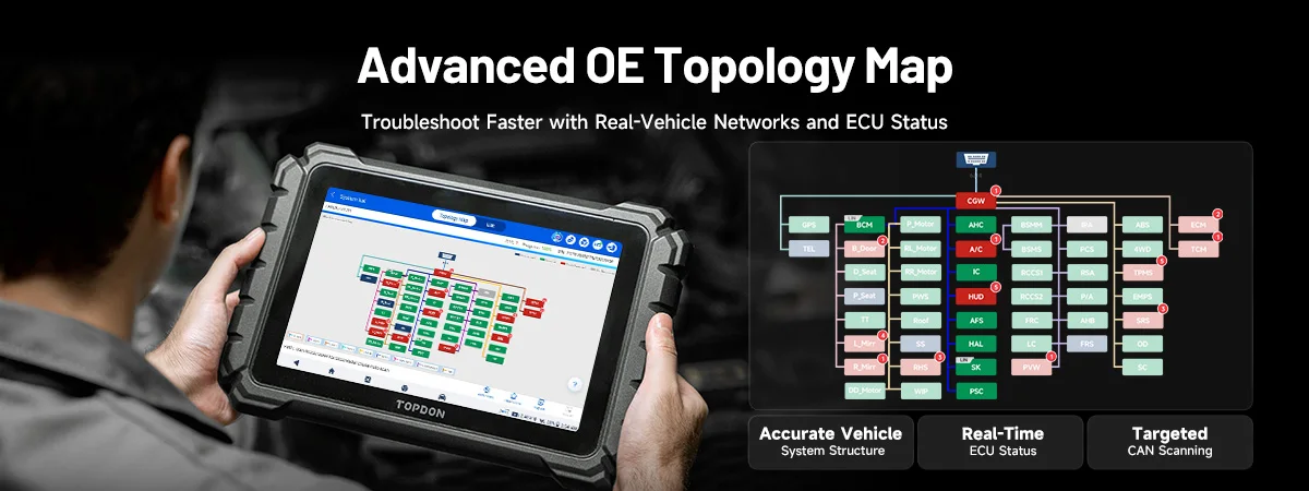 OE Level Topology Map:Displays the real vehicle bus topology, allowing users to intuitively grasp the interconnection between all ECUs.