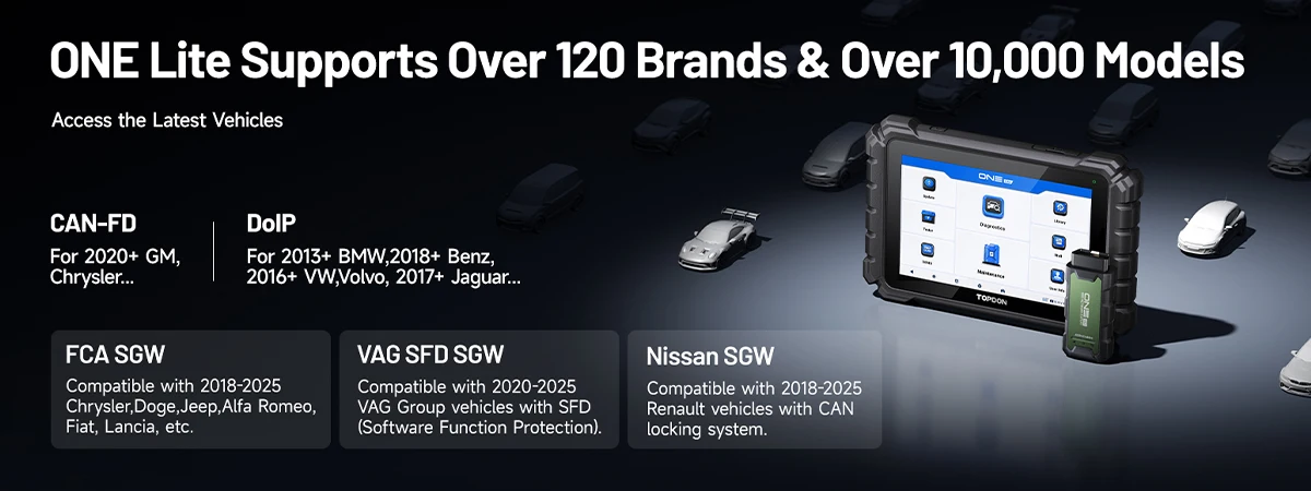Features:Full System Diagnostics For 120+ Brands:With the One Lite scanner, users can conduct a thorough scan across all vehicle systems, encompassing the engine, transmission, airbag, ABS, ESP, TPMS, immobilizer, gateway, steering, radio, and air conditioning for over 120 different brands.