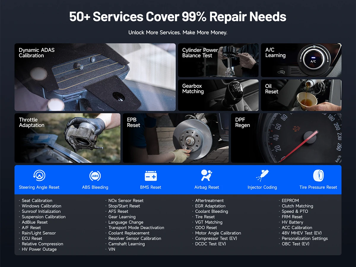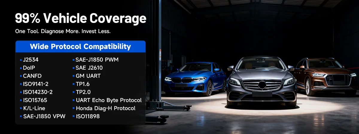 It is a highly cost-effective, comprehensive system diagnostic tool. Featuring a 10-inch large screen with 1280*800 resolution, it offers 50+ hot functions capable of performing deeper and more advanced maintenance. Equipped with the standard J2534 protocol, it enables low-cost, OEM-level repairs. The tool supports ECU coding for BMW, Benz, VW, and is compatible with a wider range of gateway protocols, significantly expanding vehicle coverage to over 120+ models.