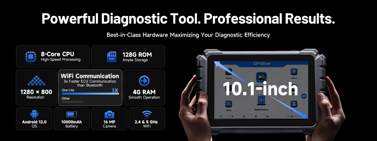Bluetooth Wireless Diagnostics With VCI:The ONE LITE scan tool comes with a Bluetooth 5.0 VCI, which supports a wireless diagnostic range of up to 33 feet (10 meters), allowing you to diagnose without being confined to cables or tight spaces. Stable and fast wireless diagnosis provides a comfortable repair environment. It also offers VCI cables to increase connectivity options.