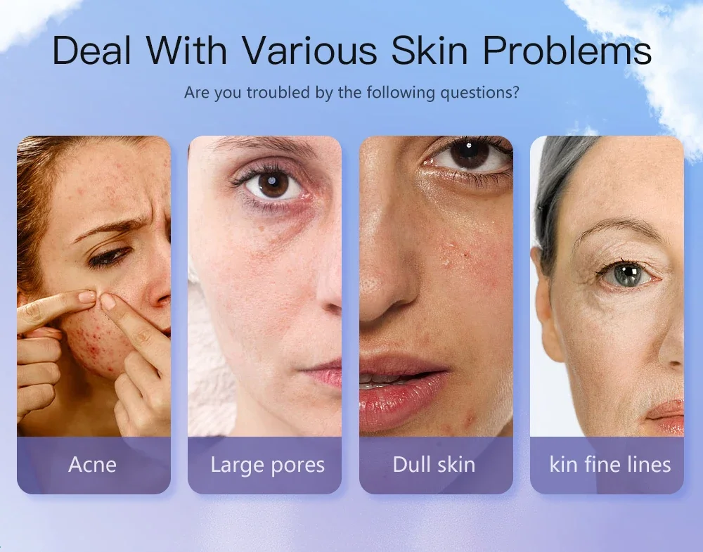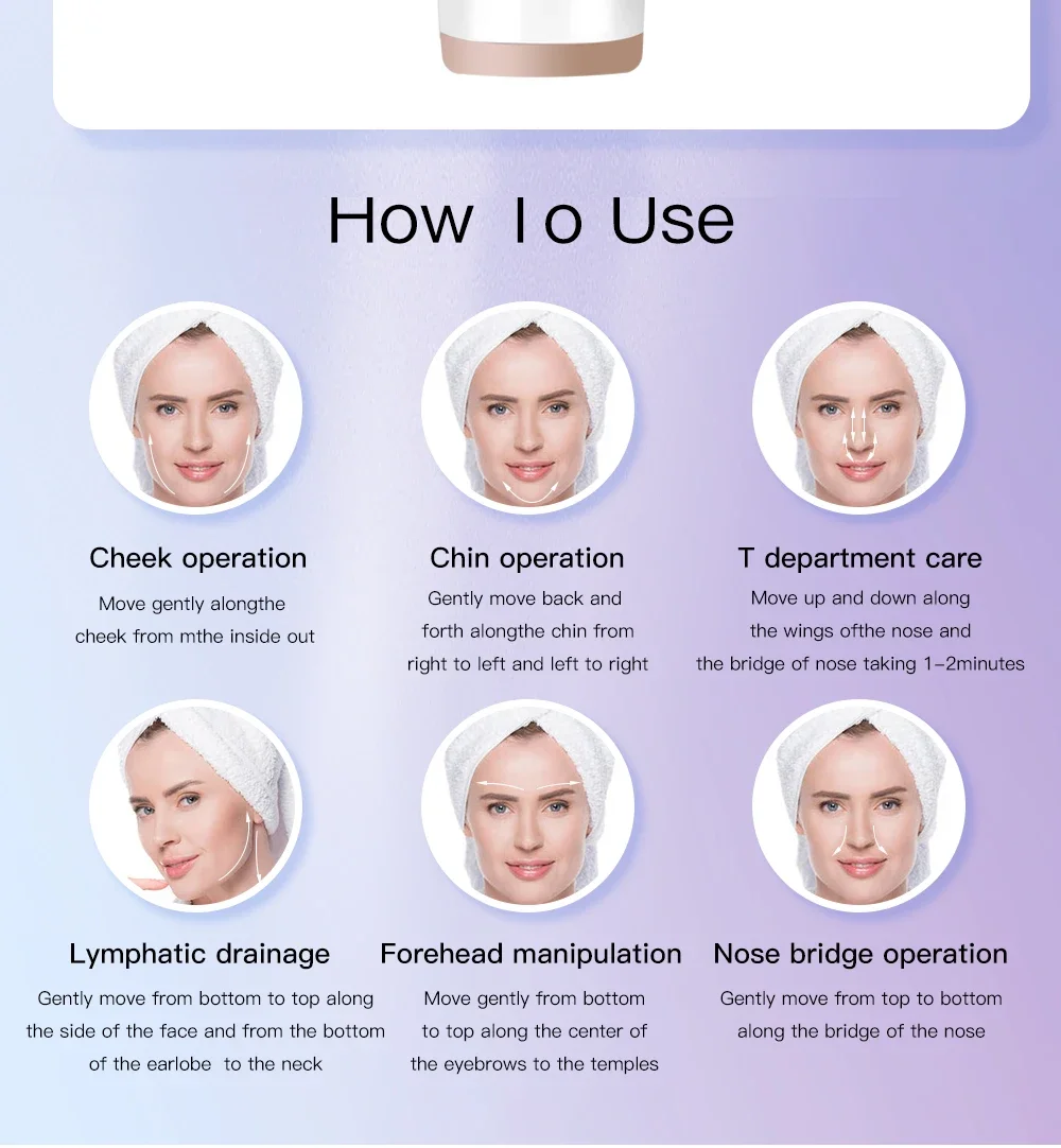 HIFU(1-6 gear;Blue light): HIFU Ultrasound deeply penetrate skin tissue,heating it up 65° and energy penetrates the skin barrier directly to the muscle layer,repairing damaged tissues,and restoring smooth and tender skin.