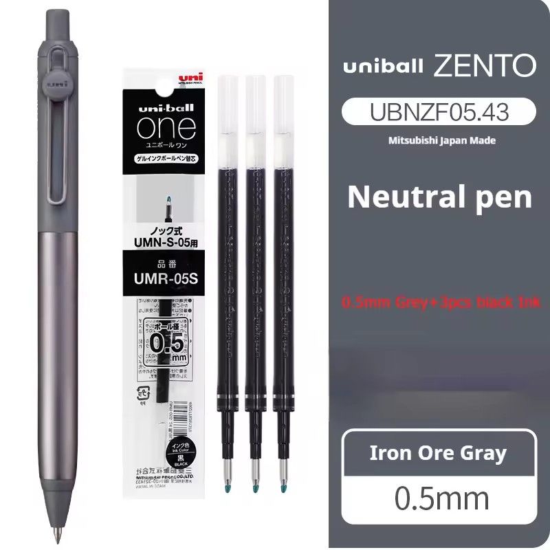 New Uni uniball Zento Flow Metal Rollerball Pen Aluminum Grip Gel Pens 0.5mm Water-Based Black Ink Ultra Smooth Writing Japan