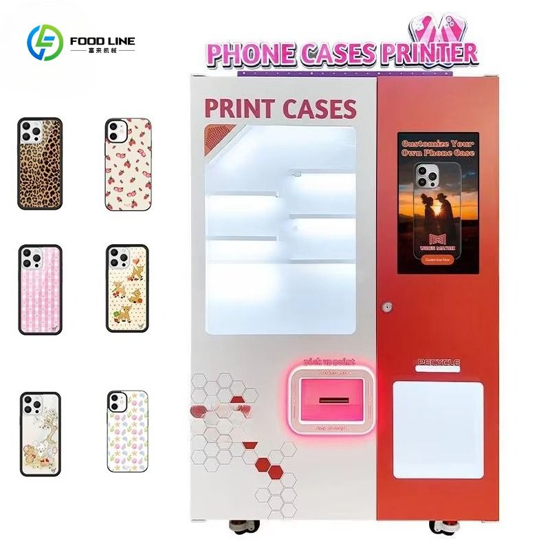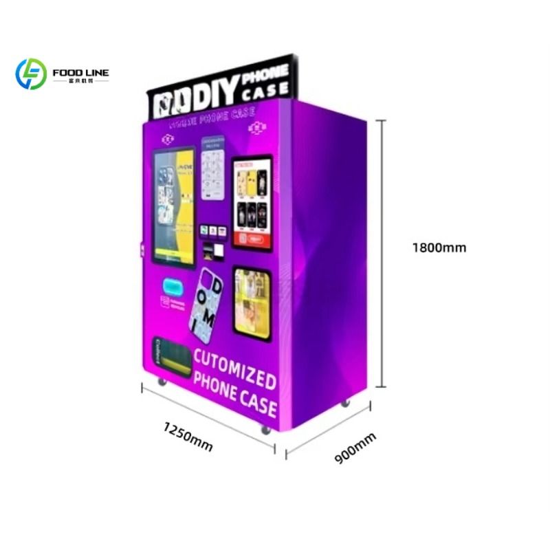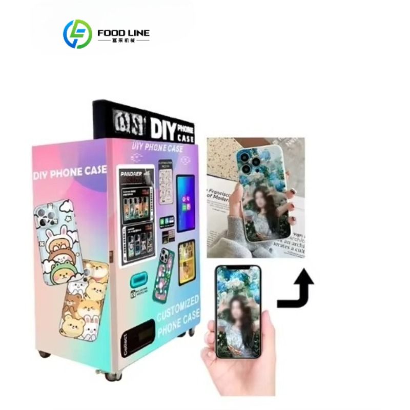 Users can design their cases on-site, and the machine prints, dries, and dispenses the finished product within 3–10 minutes, offering instant gratification.