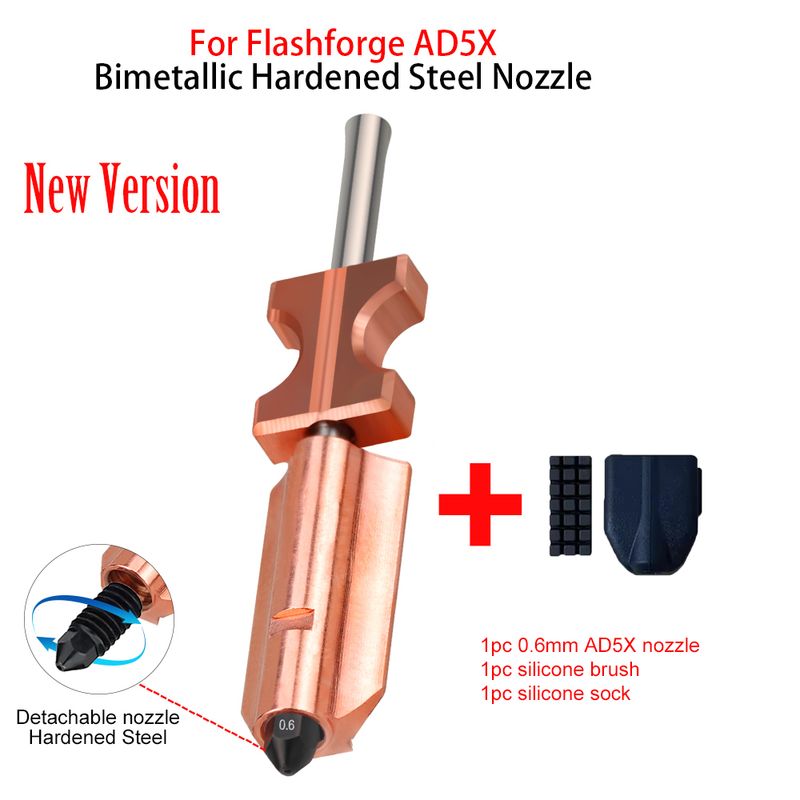 New Version For Flashforge AD5X Nozzle Upgraded Bimetallic Hardened Steel Nozzles 0.2/0.4/0.6/0.8mm 3D Printer Replacement Parts